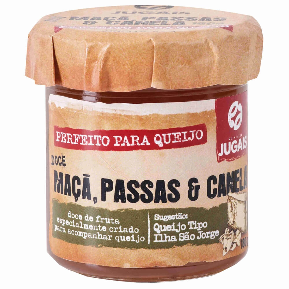 O Doce Maçã, Uvas Passas e Canela Jugais 180g combina sabores clássicos e aromáticos em uma receita artesanal sofisticada a doçura natural da maçã se harmoniza com as uvas passas e o toque levemente picante da canela, criando textura macia e sabor marcante. Versátil, pode ser consumido puro, acompanhado de pães, torradas, queijos ou como recheio de sobremesas adicionando sofisticação e autenticidade às receitas. Produzido com frutas selecionadas e processo artesanal, garante frescor e qualidade premium em cada colherada. A embalagem de 180 g é prática e elegante perfeita para degustar no dia a dia ou em ocasiões especiais.