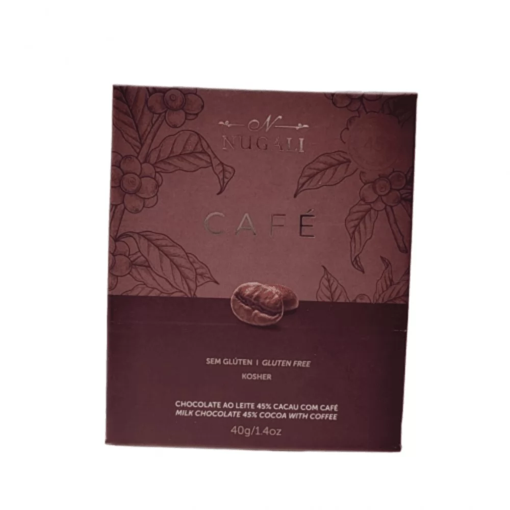 O Chocolate 45% Cacau com Café Nugali une a cremosidade do chocolate ao leite com a intensidade do café brasileiro uma combinação perfeita que surpreende pelo equilíbrio entre doçura e notas marcantes de torra. Produzido com grãos de cacau selecionados e café de alta qualidade, traz uma textura macia e um sabor envolvente que conquista em cada pedaço. Elaborado sem conservantes e com ingredientes naturais, é uma escolha que valoriza o paladar e a tradição artesanal. Com 45% de cacau, oferece um sabor sofisticado e ao mesmo tempo delicado ideal para degustar puro, harmonizar com bebidas ou presentear alguém especial.